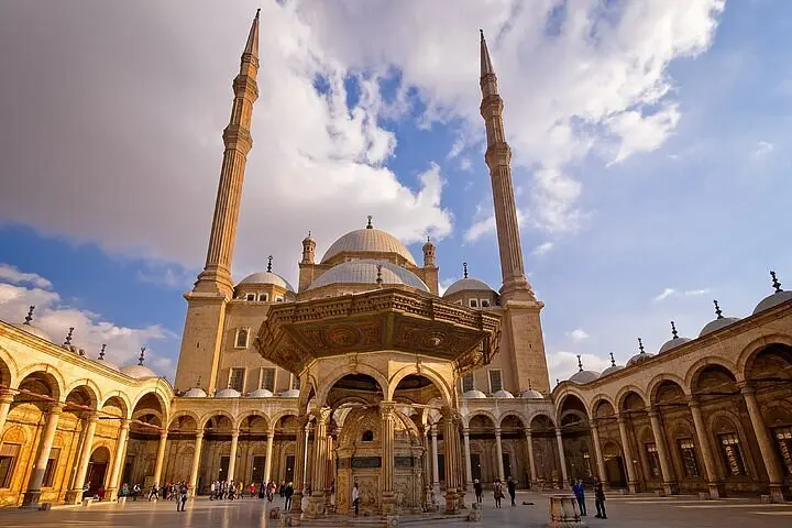Discover the Citadel’s historic walls, towers, and gates. Visit the impressive Mohamed Ali Mosque with its white alabaster walls and grand domes. Enjoy panoramic views of Cairo from the Citadel terrace.